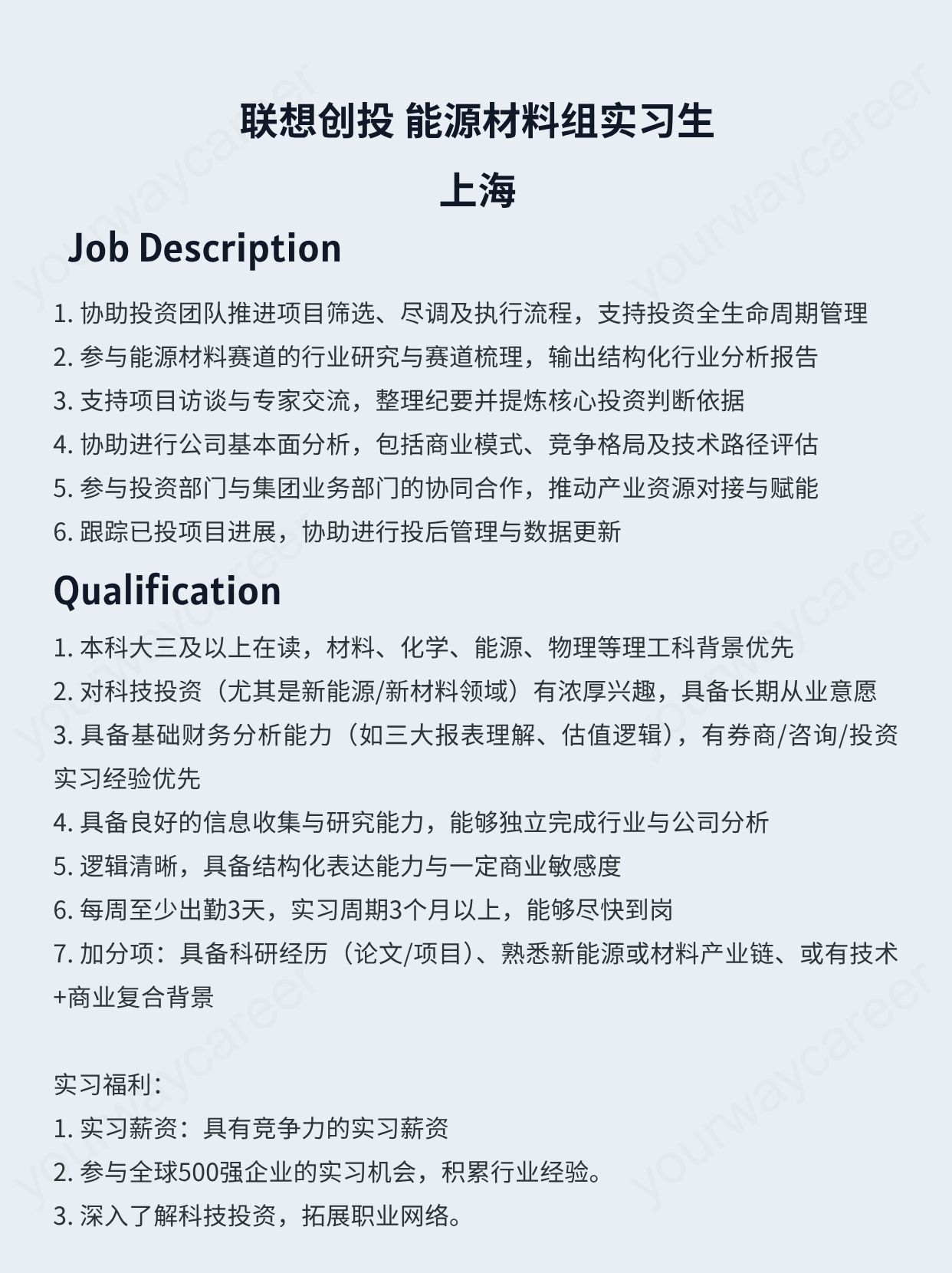 - 上海-联想创投能源材料组实习生