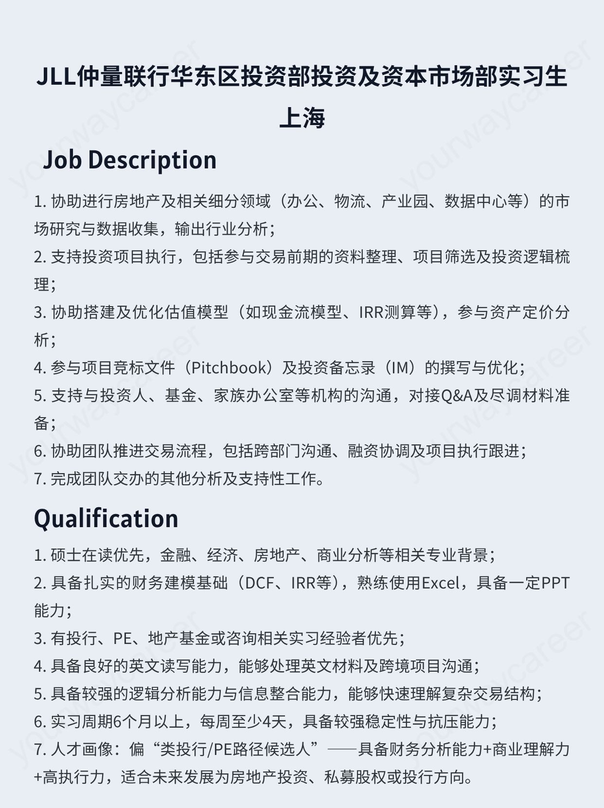 - 上海_JLL仲量联行华东区投资部 投资及资本市场部实习生