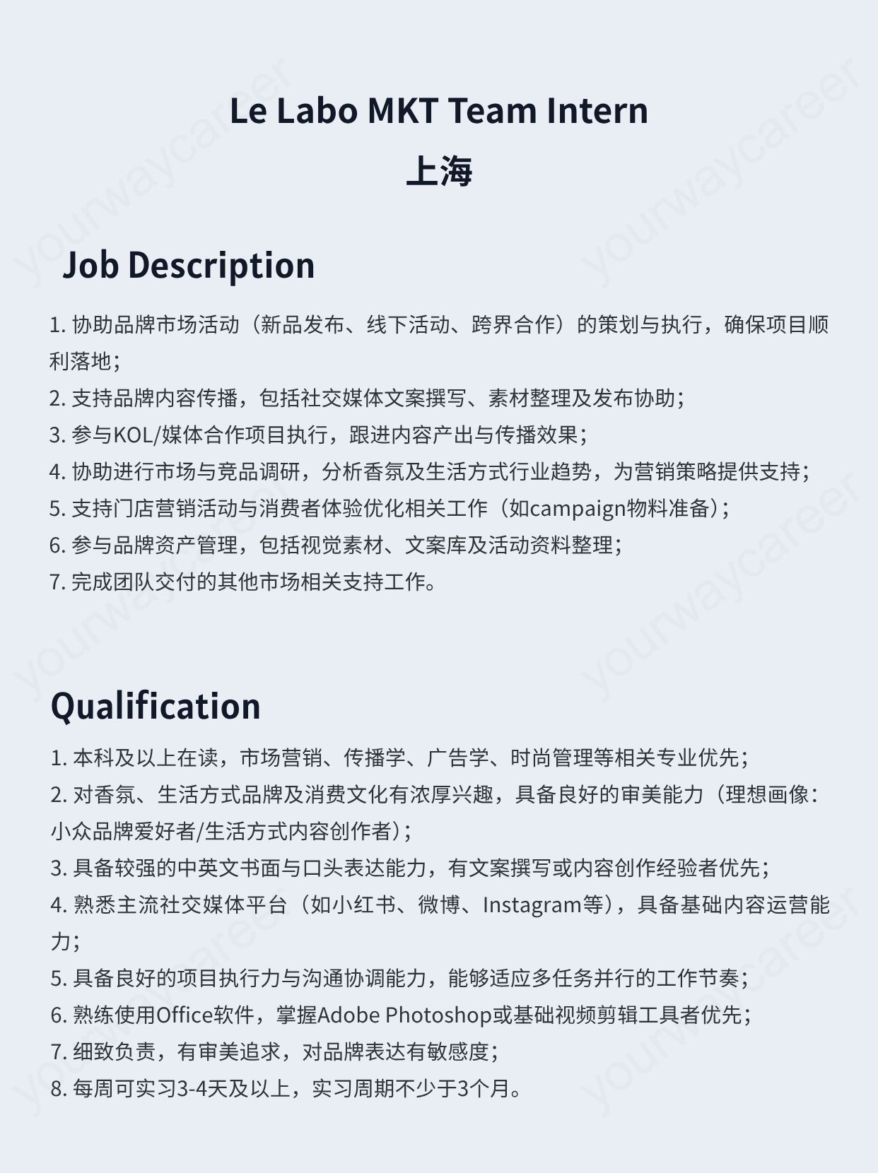 - 上海|Le Labo MKT Team Intern