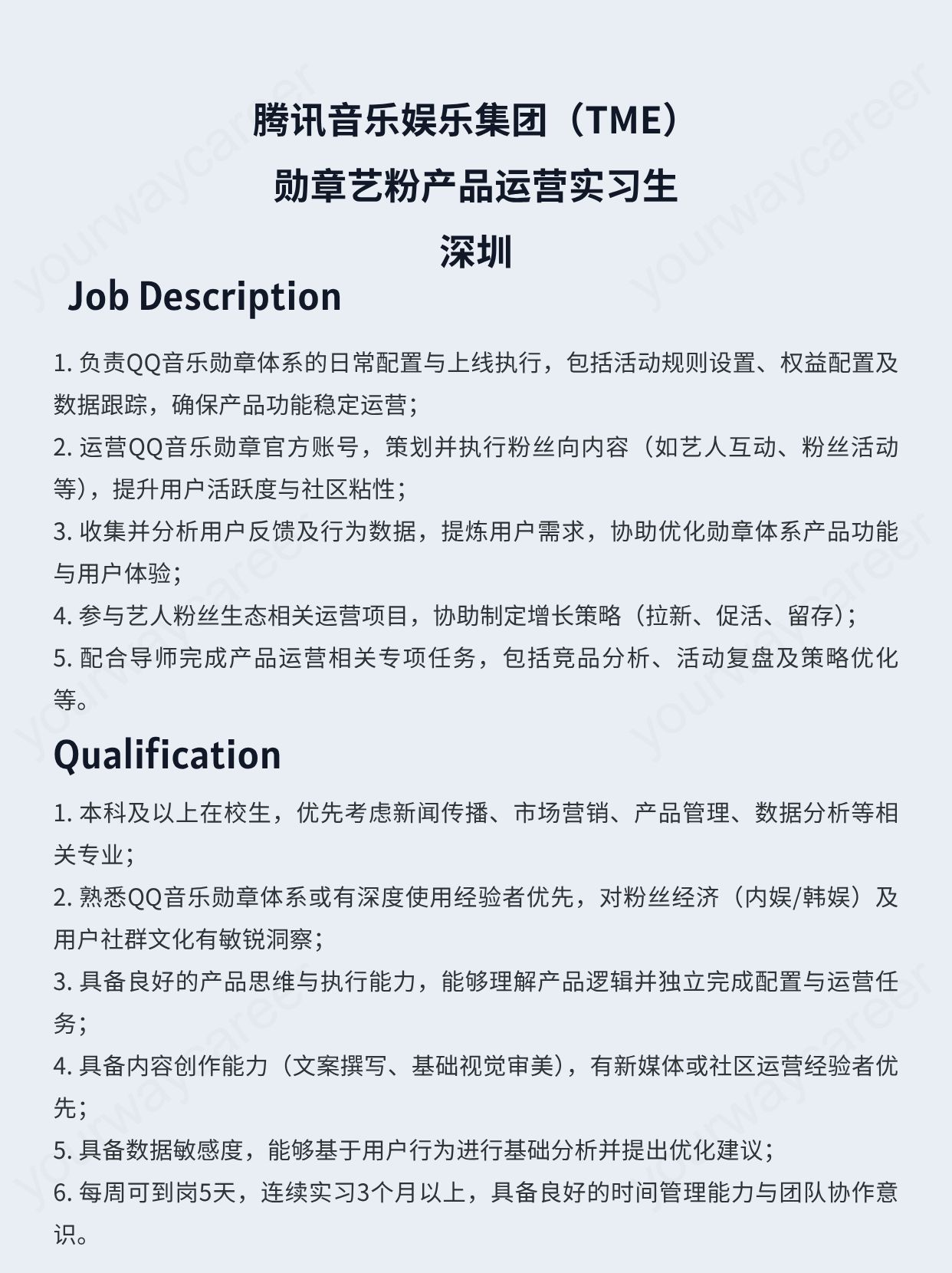 - 深圳_腾讯音乐娱乐集团(TME)勋章艺粉产品运营实习生